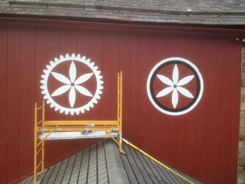 Below are a few examples of rot restoration, hand-painted barn hex signs, before and after images, and wood door stripping and refinishing.